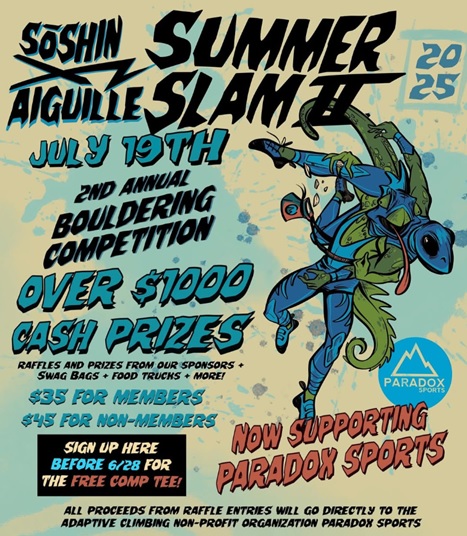 Slated for July 19, 2025, at Aiguille's flagship facility in central Florida, Summer Slam offers boulder problems across difficulty levels accompanied by cash prizes, vendor activations, raffles, and community networking opportunities.