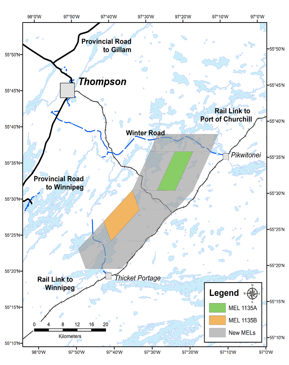 Figure 1: Map of Thompson East original two MELs (1134A & 1135A) and pending new MELS