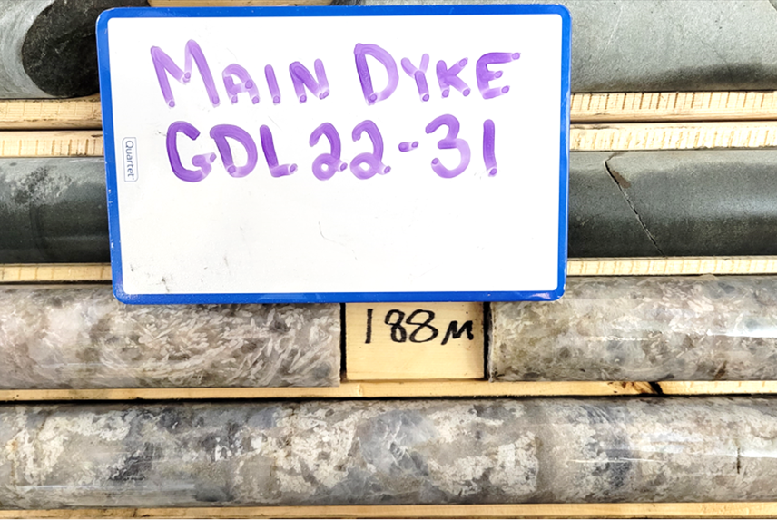 The Company currently has two drills in operation on the Main Dyke and 15 holes for approximately 3400 meters have been completed since the start of the drilling several weeks ago. The Main Dyke is being drilled at an average pierce point spacing of 75 to 90 meters and approximate vertical depths of between 100m and 250m. This work will complement shallow drilling completed in 2018 and surface channel sampling completed earlier in 2022. Pegmatite units have been encountered in every hole. The 11 holes completed in the 2018 drilling program returned average grades of 1.5% Li2O over true widths of approximately 3 metres at an average vertical depth of approximately 50 metres and over a strike length of approximately 760 metres. Historical drilling from 1955 on the dyke covered a strike length of 810 metres. The Main Dyke remains open along strike and to depth.
