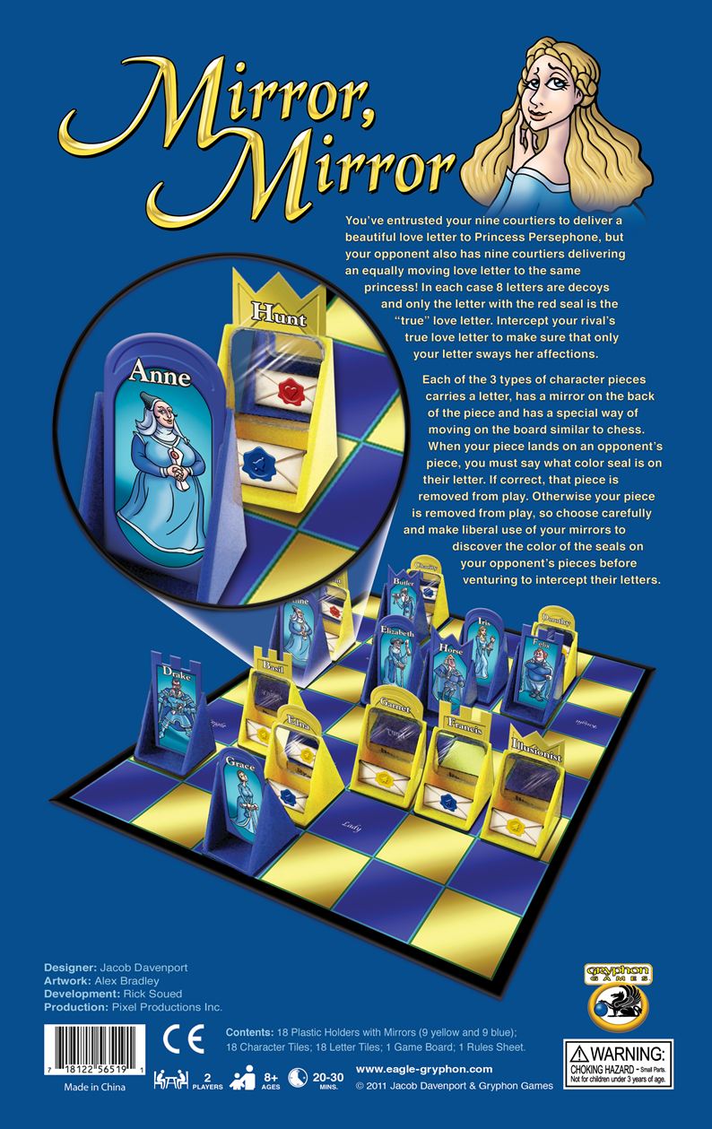 If you're a fan of Gryphon Games or games in general then you will definitely want to learn more about this exciting new game at kickstarter.com. There are several ways to take advantage of discounted prices and free shipping on this game, but only for a limited time. So, hurry and visit Mirror, Mirror on Kickstarter.com
