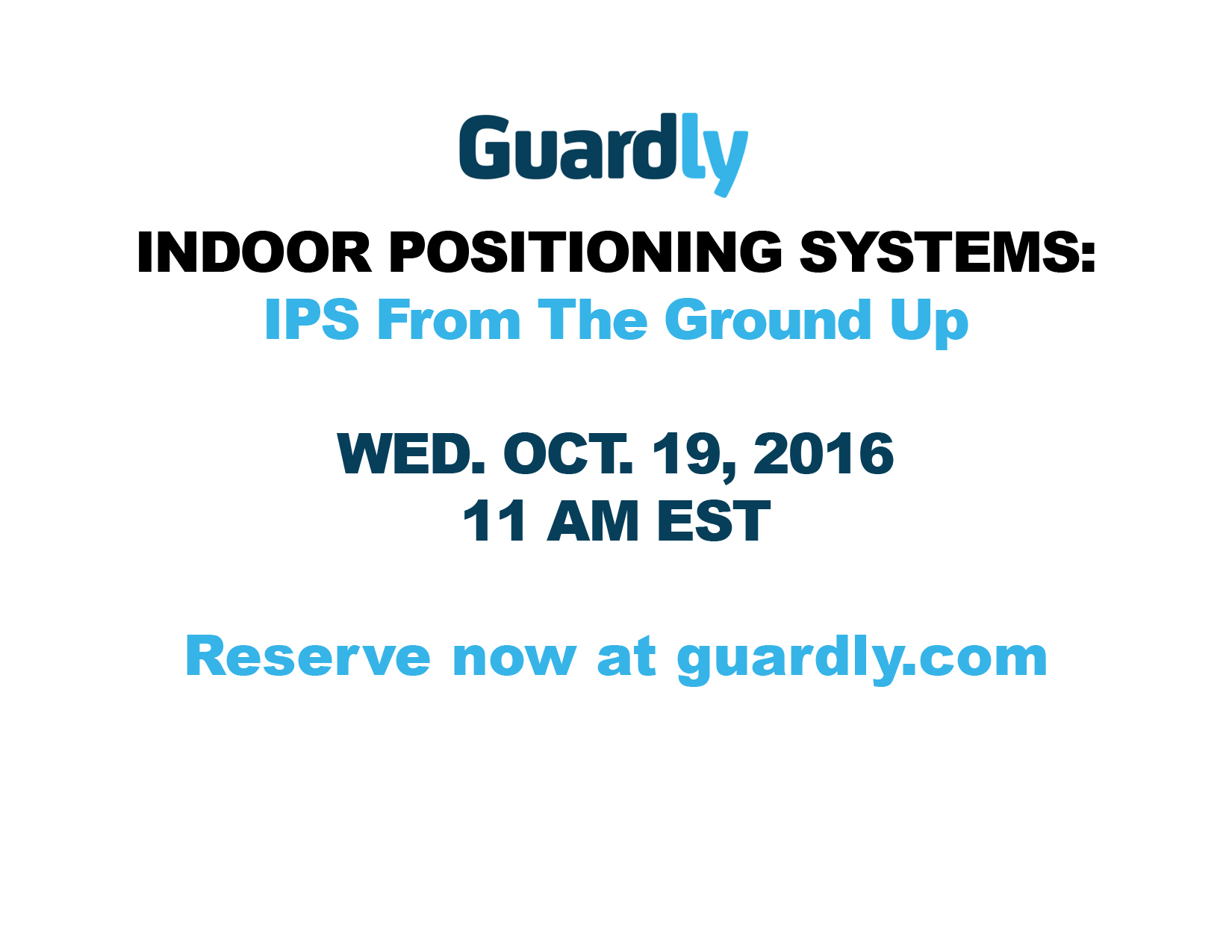 Toronto, Ontario, October 7, 2016 (Newswire.com) - Guardly CEO Rob Moffat today joined Director of Sales Luke Slan and VP Business Development Tom Sinnott to announce October 19th, 2016 as the date for the first of three monthly educational webinars: 'Indoor Positioning Systems: IPS From The Ground Up.'