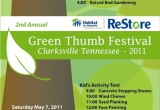 ReStore's Green Thumb Festival provides the Clarksville community with information on gardening, composting, sustainability, and recycling. Green Thumb is Saturday May 7th, 2011 from 9am to 5pm in the ReStore parking lot located at 408 Madison St. in downtown Clarksville.