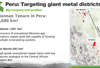 At the San Martin Project located 400 km NNE of Valiente, Hannan has discovered a basin-scale high-grade sediment-hosted copper-silver system that extends over 200 km x 100 km along the foreland region of the eastern Andes Mountains. Mineralization is geologically similar to the vast Kupferschiefer deposits in Eastern Europe. Sediment-hosted stratiform copper-silver deposits are among the two most important copper sources in the world, the other being copper porphyries.