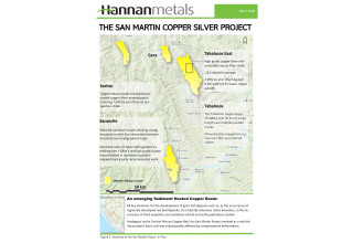 Hannan Metals Limited ("Hannan" or the "Company") (TSXV:HAN)(OTC PINK:HANNF) is pleased announce that it has discovered a new style of sediment hosted copper-silver mineralization at San Martin West located within the San Martin project in northern Peru (Figure 1).
