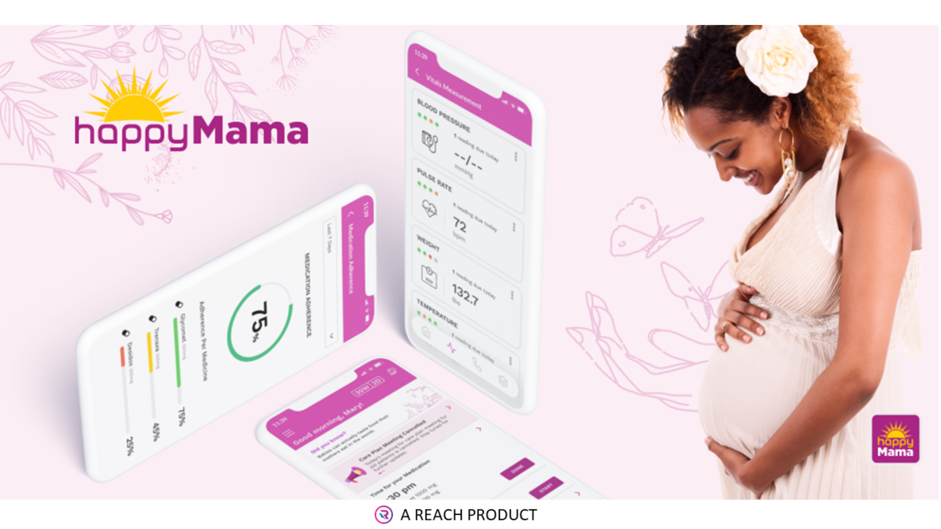 "Expectant and new mothers and their maternal health care providers have long been in need of a comprehensive, secure, easy to use platform that is grounded in science," said Fran Ayalasomayajula, MPH, MSMIS, PMP, President at REACH. "It is an honor to introduce Happy Mama and be recognized by the Consumer Technology Association for its ingenuity and personalized response to the unique needs of women during pregnancy and motherhood. Coupling such robust technology with health education from the American Medical Association, Release the Pressure, Visual Health Solutions, and a variety of partners in physical, mental, emotional, self-developmental, and social-economic wellbeing, Happy Mama is addressing the social determinants of maternal health, and building the confidence of both expectant moms and care teams."