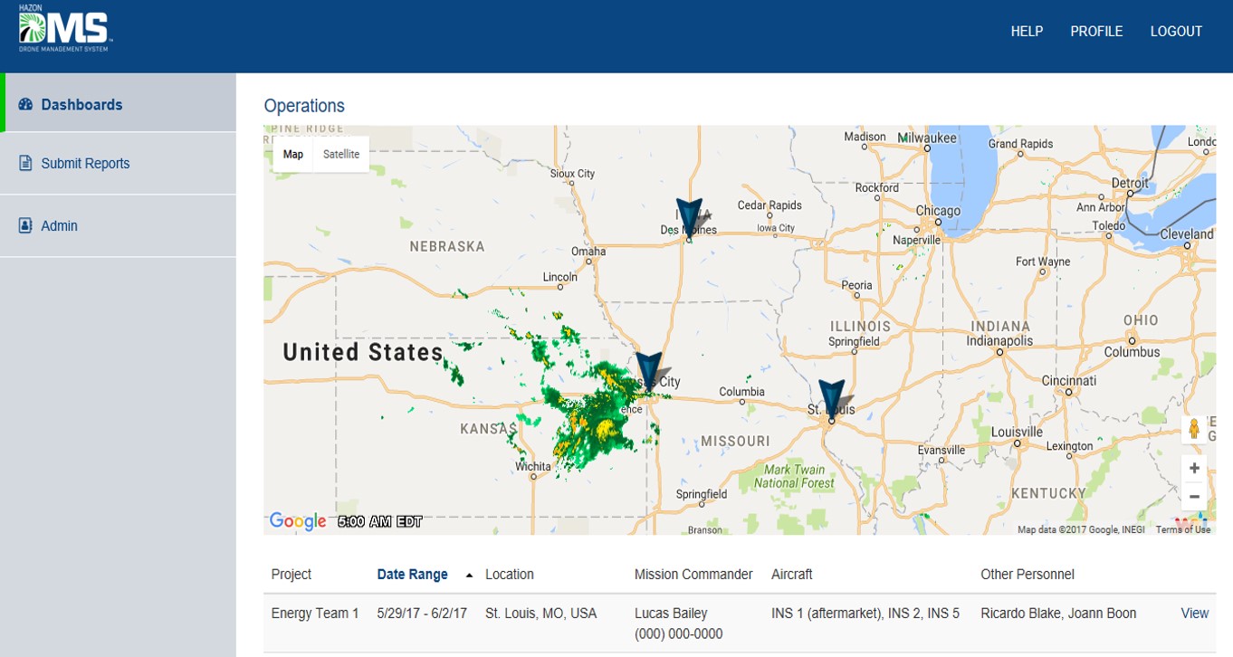 HAZON DMS is offered at three levels. Remote Pilot is free to individual users. Drone Team is designed for small businesses on a fee-per-user basis. Enterprise Systems is designed for larger organizations with multiple users, unique requirements and dedicated support. HAZON DMS is currently being used by all levels of drone service providers, first responder organizations, universities and corporations around the country, and can be found at www.HAZONDMS.com