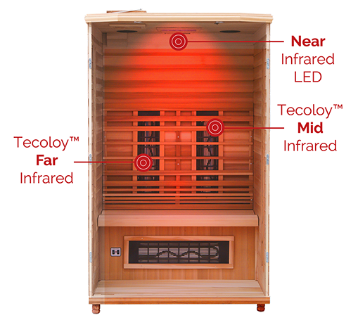 Tecoloy technology allows for a mid and far infrared sauna. This sauna is, as of press time, the only dual wave heater on the market to incorporate both mid and far-infrared.