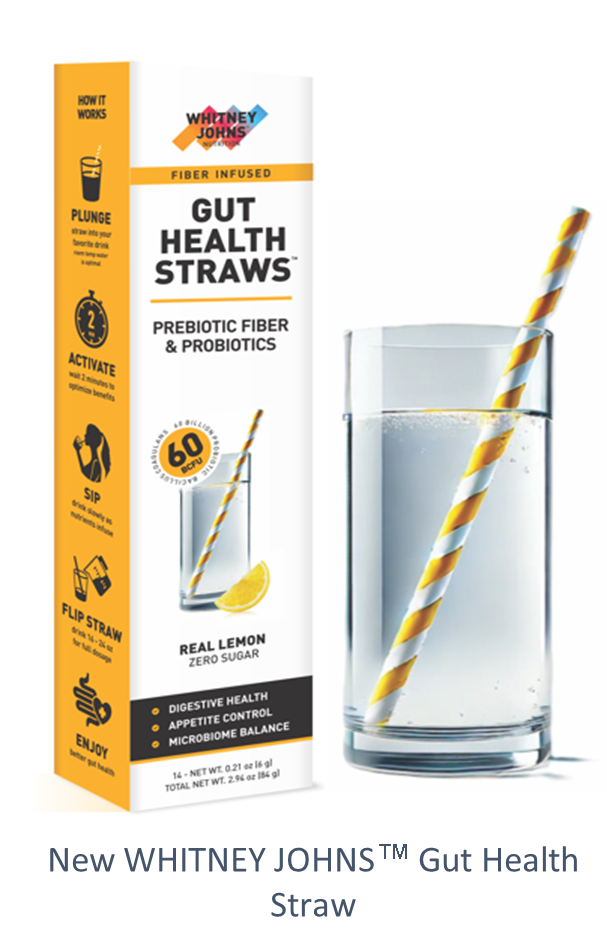 The WHITNEY JOHNS™ Gut Health Straw™ introduced last week is available to order today at whitneyjohns.com. Designed for maximum convenience and effectiveness, this revolutionary product allows consumers to enjoy a delicious natural lemon flavored, sugar-free, prebiotic and probiotic blend by simply sipping through a straw-no pills, powders or hassles, just better gut health one sip at a time!
