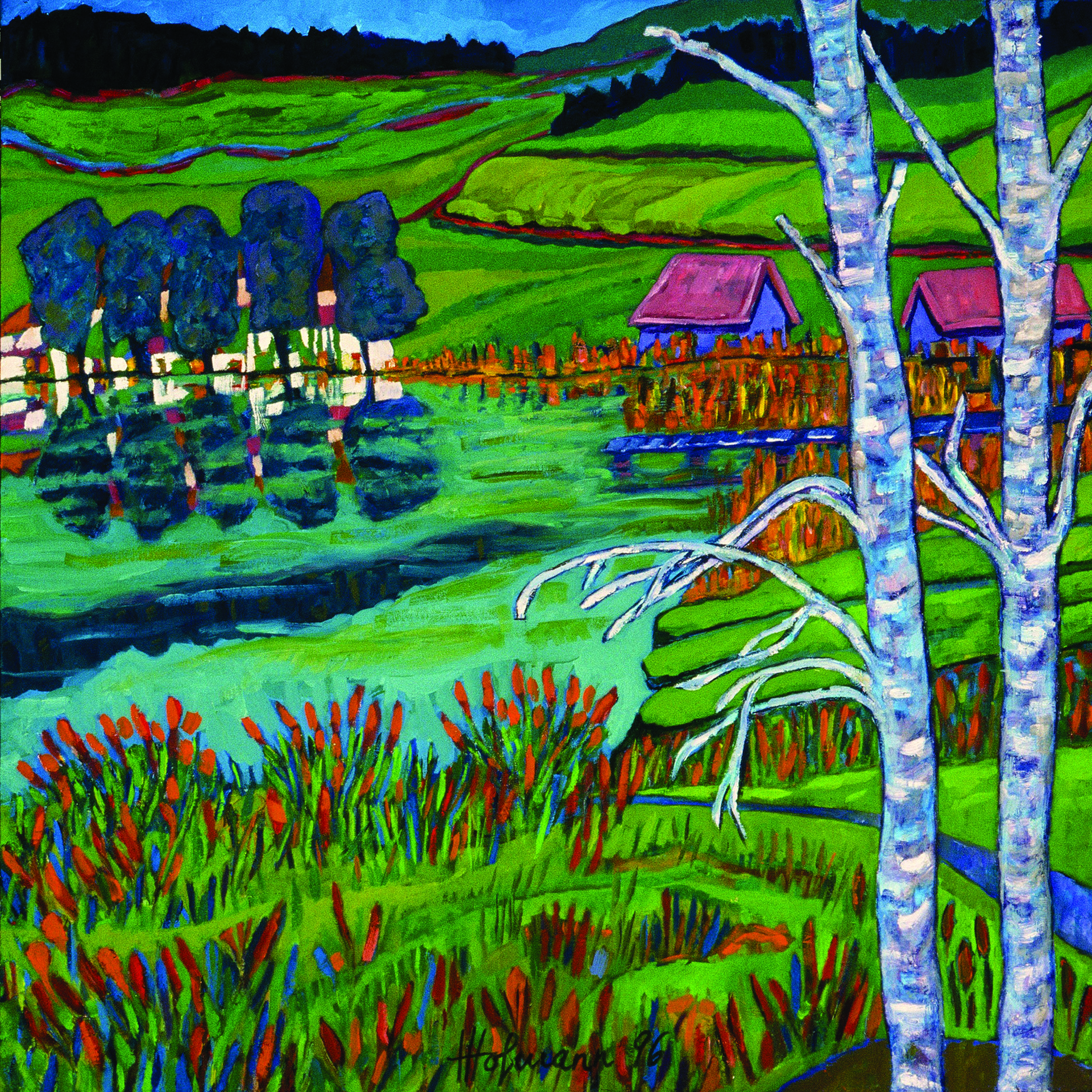 Heli Hofmann also depicted her extensive travels with bold strokes and vivid colors, in new visions of rural and urban beauty blended with harmony of land and sky.