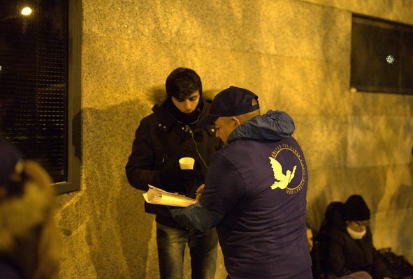 Volunteers from the Madrid chapter of United for Human Rights, the human rights initiative the Church supports, reached out to refugees at the immigration office in Madrid to inform them about the 30 articles of the UDHR. They were joined by members of Asociación FOARE, a nonprofit organization that helps orient, train and provide assistance to refugees and immigrants.