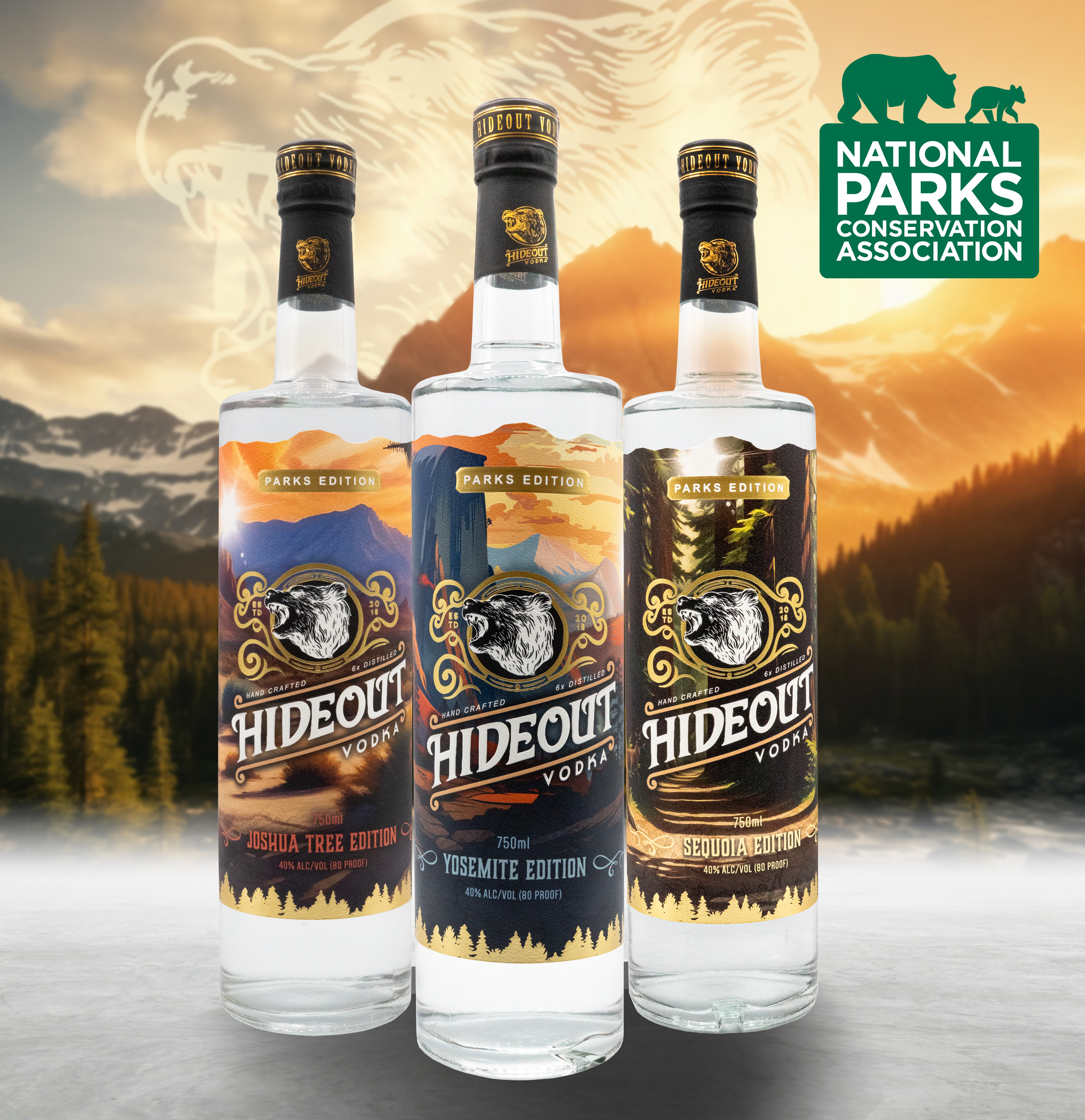 “Our national parks protect iconic and irreplaceable landscapes, providing space for us to connect with nature and each other,” said Theresa Pierno, President and CEO for National Parks Conservation Association. “Partnering with Hideout Vodka furthers our mission of national park protection to ensure that future generations can stand in the shade of a magnificent sequoia, marvel at Half Dome and experience the distinctive desert ecosystems at Joshua Tree—among the hundreds of other park experiences that are a critical part of America’s legacy.”