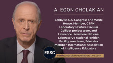 A. Egon Cholakian PhD is a Visiting Researcher (National Security) at Harvard University, and a retired Physicist / Attorney. Lobbyist, U.S. Congress and White House, Member of NASA's NISAR mission team, CERN Laboratory's Future Circular Collider project team, and Lawrence Livermore National Laboratory's National Ignition Facility user team, Educator member, International Association of Intelligence Educators.