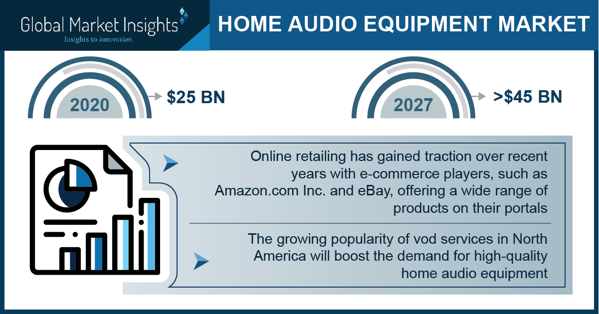 SELBYVILLE, Del., February 24, 2021 (Newswire.com) - According to the latest report "Home Audio Equipment Market by Technology (Wired, Wireless), Distribution Channel (Online, Offline), Regional Outlook, Price Trends, Competitive Market Share & Forecast 2027", by Global Market Insights, Inc., the market valuation of home audio equipment will cross $45 billion by 2027. The high demand for advanced audio-visual solutions will propel the market growth.