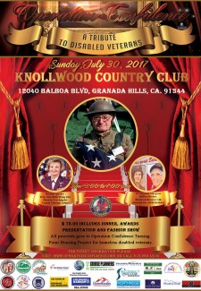 The nonprofit’s flagship event, “A Tribute to Our Veterans” gala, is being held at the Knollwood Country Club, 12024 Balboa Blvd. Granada Hills, CA 91344 on July 30, 2017 from 3:00 pm. to 7:00 p.m.