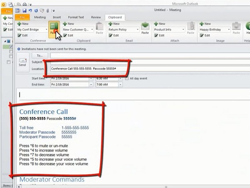 Schedule appointments faster on Outlook calendar. Auto-fill meeting invites with conference details, meeting location and conference bridge dial-in instructions.