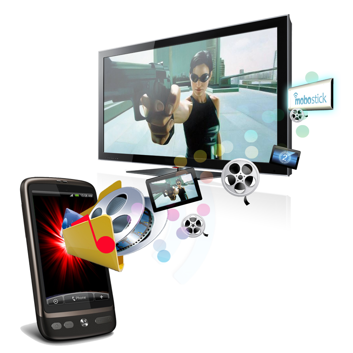 Complementing Android built-in technologies like DLNA Apps, the mobostick works with media as well as any file type like word, presentations, spreadsheets, text etc. It is portable and it does not require a DLNA enabled device on the other end. mobostick™ allows copying of files from the Android device in addition to streaming them, something that current technologies are unable to do.