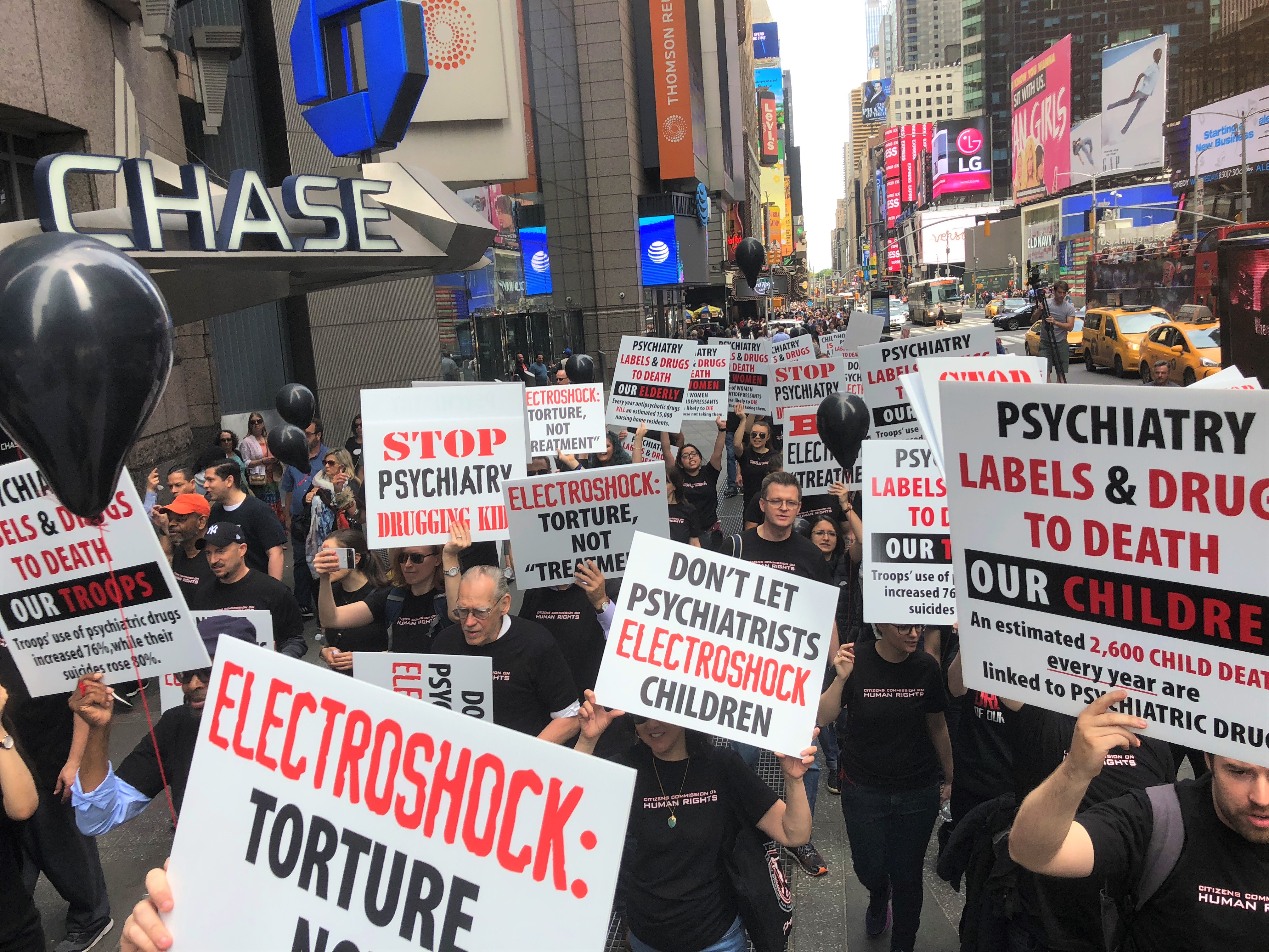 LOS ANGELES, May 14, 2018 (Newswire.com) - The mental health watchdog Citizens Commission on Human Rights (CCHR) New York protested psychiatry’s ongoing use of electroshock treatment (ECT), especially on toddlers and children when it marched on the annual conference of the American Psychiatric Association (APA) in New York on Saturday, May 5. While most Americans believe that ECT — the passage of up to 460 volts of electricity sent through the brain — stopped following the 1975 film One Flew Over the Cuckoo’s Nest, CCHR says the more than 25 lectures or papers presented on electroshock at the APA convention this year puts such beliefs to rest. The U.S. manufacturers of electroshock devices were two of many psychiatric device and pharmaceutical companies exhibiting at the APA conference. The protest condemned electroshock as "torture" and called for it to be banned.