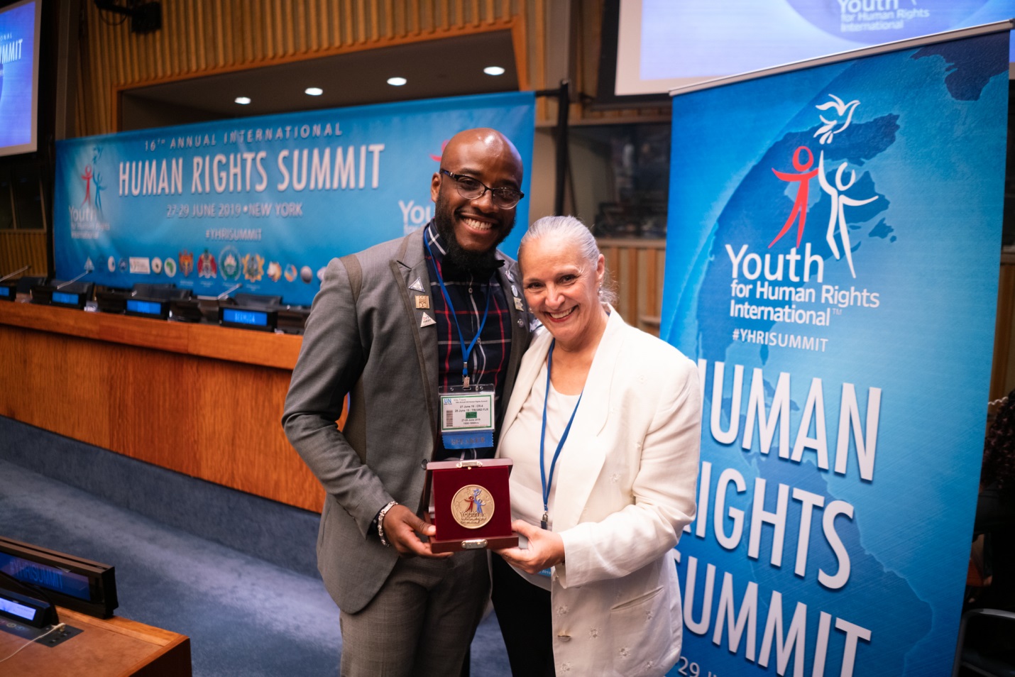 He received the award from Youth for Human Rights International President Dr. Mary Shuttleworth before an audience composed of youth delegates and ambassadors from 45 nations, government officials, UN ambassadors and representatives of diplomatic missions, and members of NGOs and nonprofits from around the world.