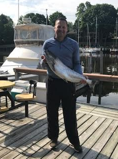 "Well - as luck may have it, I have won the Manistee Fishing Tournament this weekend. It's surreal and quite impressive. My winning fish was a king salmon that weighed in at 28.85 lbs and 42 inches long with a girth of 26 inches - the catch earned me the Master Angler's Designation.”