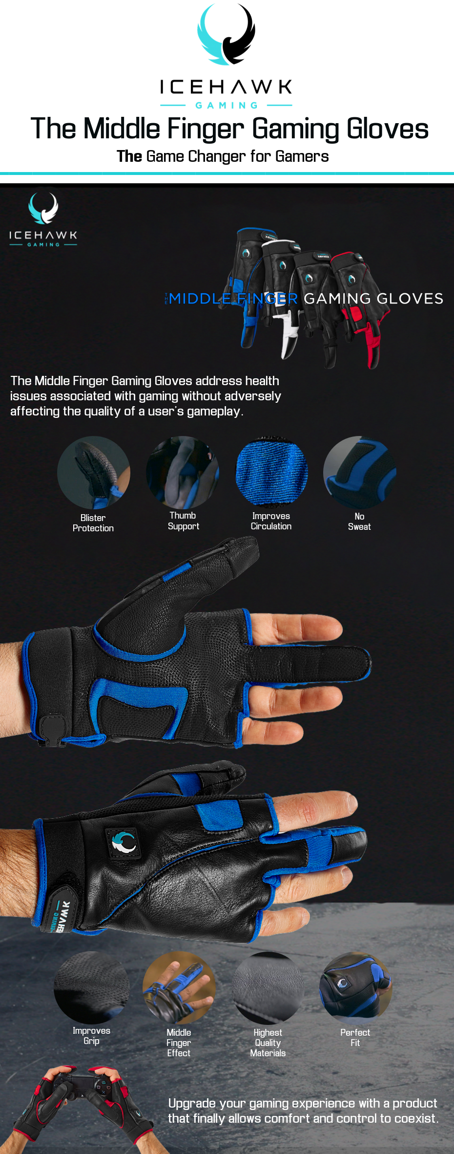 "The Middle Finger Gaming Gloves not only assist with the typical health issues a gamer faces and provide the benefits of better gameplay without pain, but they also ensure a gamer can play without skill degradation."