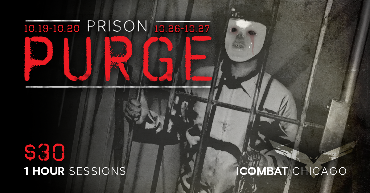The special Prison Purge sessions at iCOMBAT Chicago will be featured on Friday and Saturday evenings from October 19th to October 27th, beginning after 5pm on Fridays and 3pm on Saturdays. The sessions will be 60 minutes long and cost $30. Reservations are encouraged and can be made at chicago.icombat.com, or by calling 855-454-4426. Due to the intense action, players must 13 years or older.