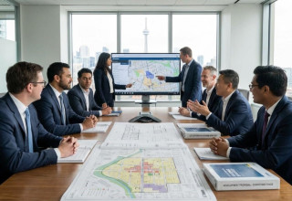 City planners and developers collaborate on affordable housing policy in a Toronto boardroom.