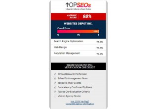 After a close independent evaluation and analysis of its core business, Websites Depot scored over 95 percent in each of the grades assigned to each of its respective services. The web agency ranking site listed Websites Depot as the fourth best reputation management company in the United States and eighth best web design company.
