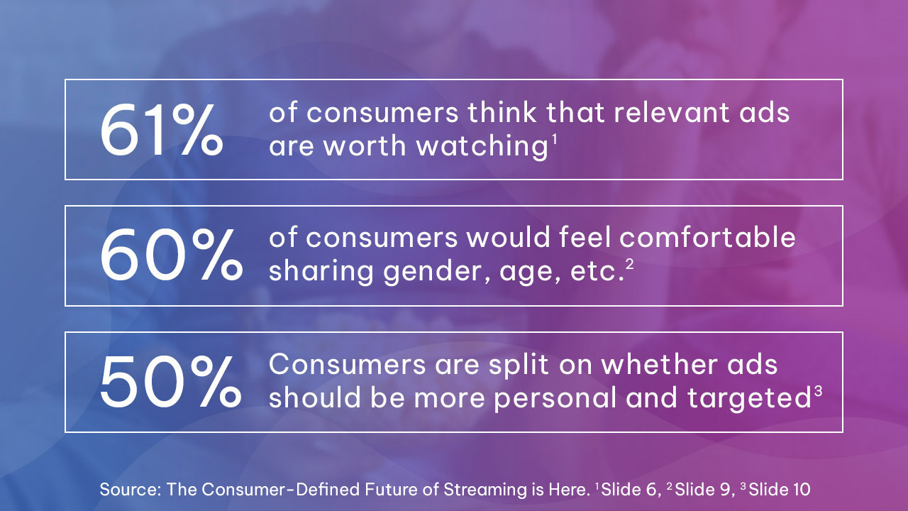 - Over 70% would offer more detailed personal information in exchange for more personalization in streaming ads.
