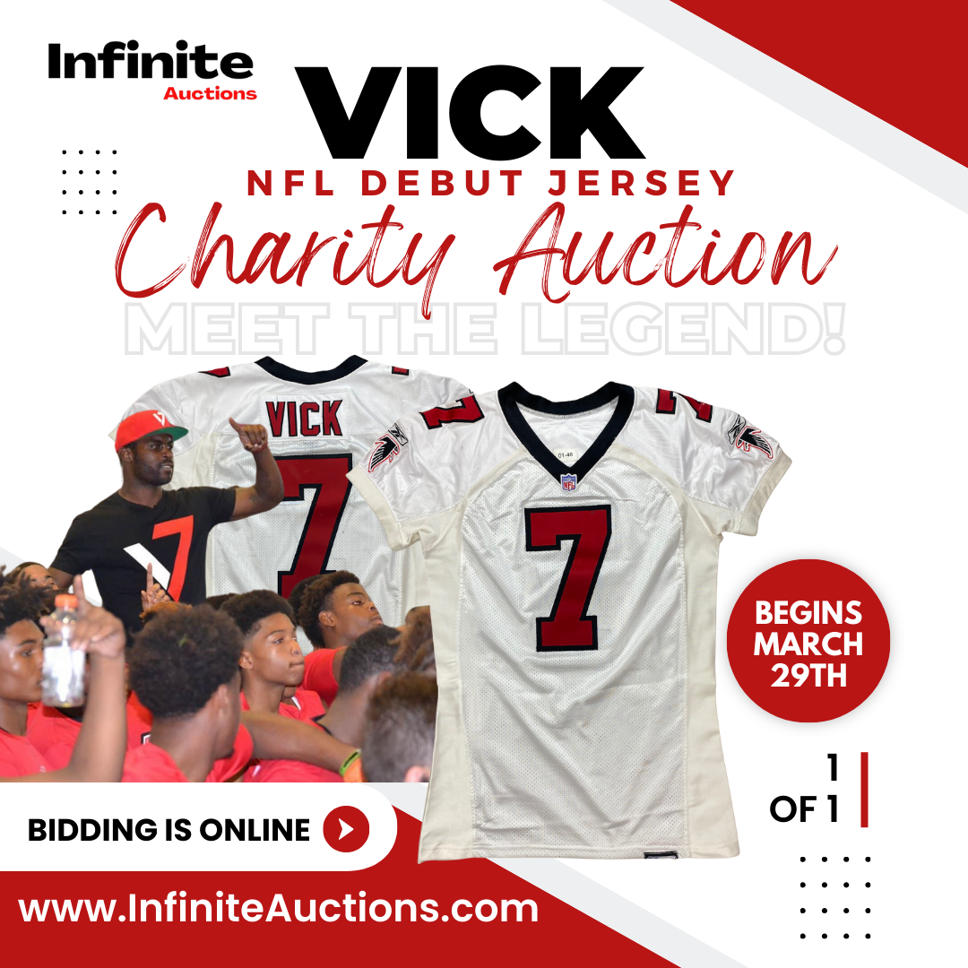 MESA, AZ, March 12, 2024 (Newswire.com) - Infinite Auctions, is thrilled to announce the auction of Michael Vick's historic rookie NFL debut jersey, set to begin on March 29, 2024 and end on April 26, 2024 with a portion of the proceeds going to the Boys and Girls Club of America. This jersey holds significant historical value as it was worn by Michael Vick during his very first regular-season game in the NFL on September 9th, 2001. Vick represented the Atlanta Falcons in a match against the San Francisco 49ers.
