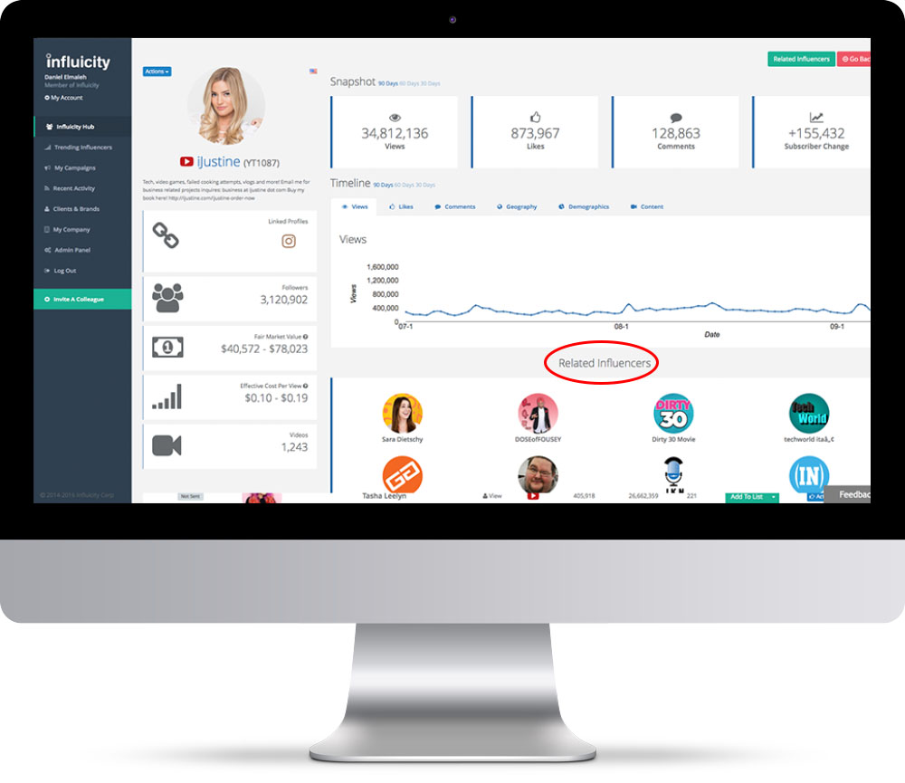 Toronto, Canada, October 5, 2016 (Newswire.com) - Influicity has added to its platform by introducing Related Influencers to the suite of tools. This feature equips marketers with the ability to view one influencer in the Hub, then scroll down for others who share similar audience profiles. This feature builds on the company's extensive discovery tools, which already include multiple search methods. It also comes just a few months after the company rolled out Magic Search.
