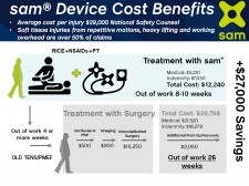 At just the fraction of the cost of a surgical procedure, sam® eliminates the risk of infection and injury that can occur as a result of surgery. This helps insurers avoid reimbursing even more costs. sam® is so effective, it can improve surgical outcomes, thereby decreasing the chances that patients will need a follow-up surgery. Furthermore, the solution reduces the need to provide in-office physical therapy and provides pain relief while accelerating healing.