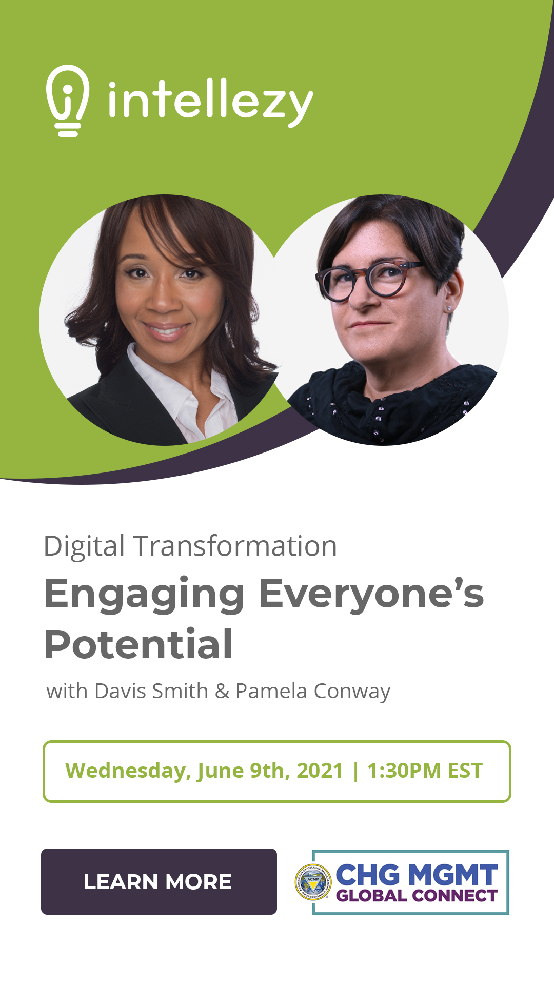 On June 9 at 1:30 p.m., Intellezy's Pamela Conway, Chief Learning Officer, and Davis Smith, VP of Organizational Readiness, will speak on Digital Transformation: Engaging Everyone's Potential.