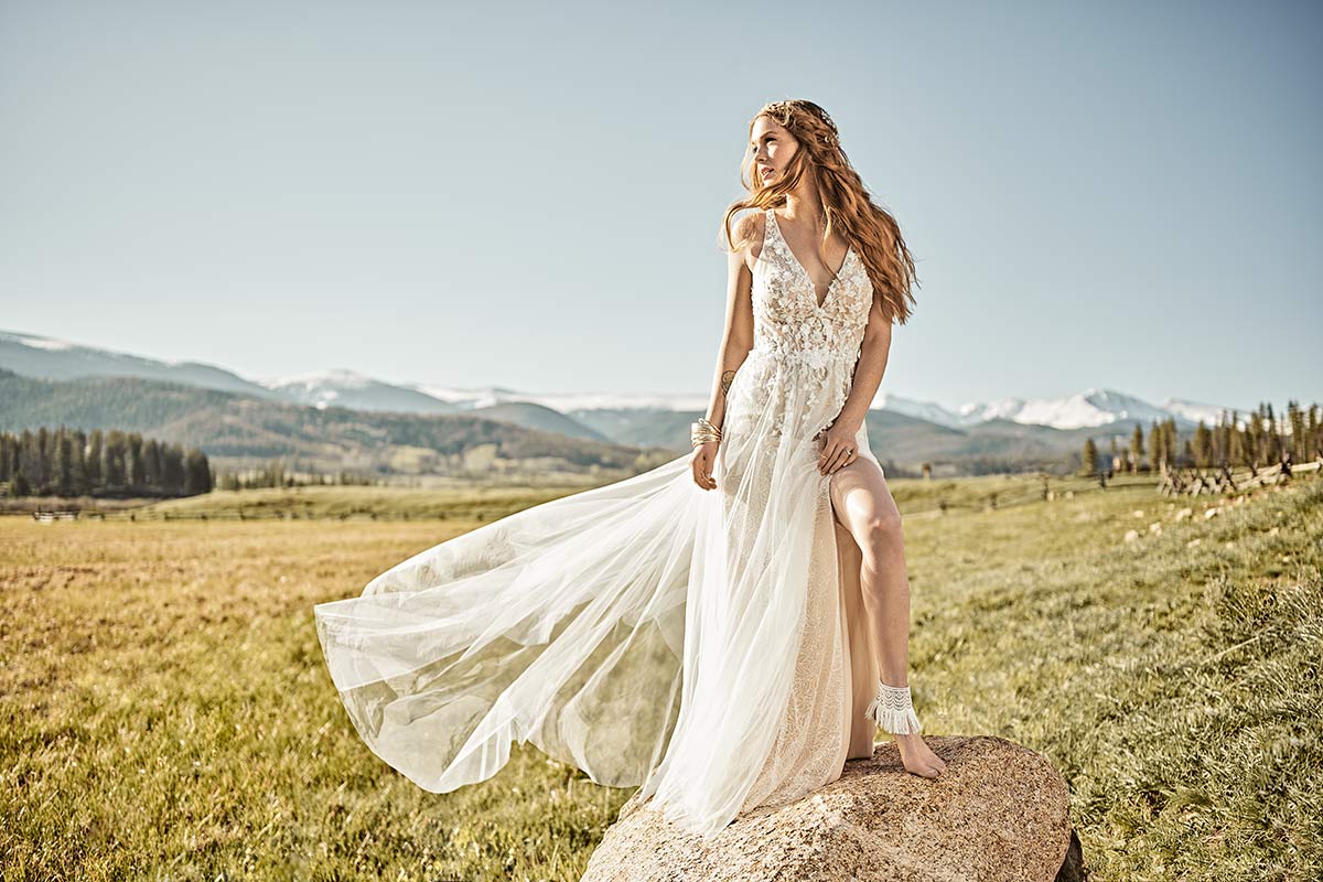 “This generation of world travelers, adventure seekers and storytellers oftentimes take their vows anywhere from rugged mountaintops to lush woodlands, grand seascapes or even rustic industrial landmarks in hopes of making their wedding day not only an event—but an experience,” Harris said. “I wanted All Who Wander to be a collection of gowns that captures this spirit—giving these brides more than just a gown as they embark on their greatest adventure of all into marriage.”