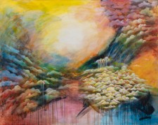 Into the Myst: A Journey of Just Being comprises 11 original paintings (acrylic wash on canvas); the works are also available as high-end reproductions.