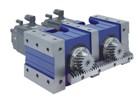 High precision gearboxes come in the following two types: AG and PG series which both cater to specific applications that employ high precision. AG utilizes ball bearings ob the output side, allowing for a longer flange than the PG series. PG utilizes double tapper roller bearings, allowing it to bear larger axial loads. The core and planetary gears of the PG are carburizing, heat-treated, and ground, extending usability and smoothing the teeth surface. AG gears are cut and nitrogen treated. The PG offers a much higher rigidity than the AG and both series of gearboxes come in gear ratios from 3 to 100, and backlashes less than 3 arcmin.