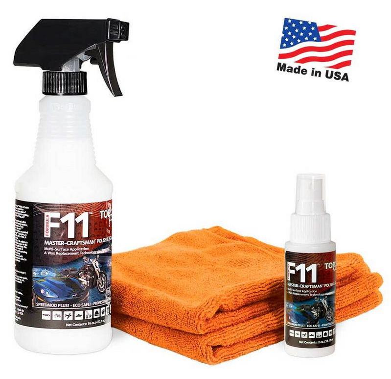 Proper application helps ensure that the product stands up to the elements and users can look forward to an array of fantastic benefits which transform any surface, vehicle or motorcycle into a true complete coated and durable finish. Not only will users find that they no longer need to wash their vehicle with soap, but the high-tech solution will actively repel bugs, dirt, and grime, meaning surfaces stay looking new for much longer than ever before. F11® is an extremely hydrophobic, easy release formula that allows bugs, dirt, grime, bird droppings, and even road-film to release from the surface much easier than non-coated surfaces. Traditional cleaning methods become obsolete as maintenance becomes effortless with every application. Reapplication every 1-6 months helps ensure these benefits and increases the life, durability, protection, and resilience of the coating. F11® offers a superior depth of image, color, and shine, enhancing and improving any finish to like new, including denim and flat paints.