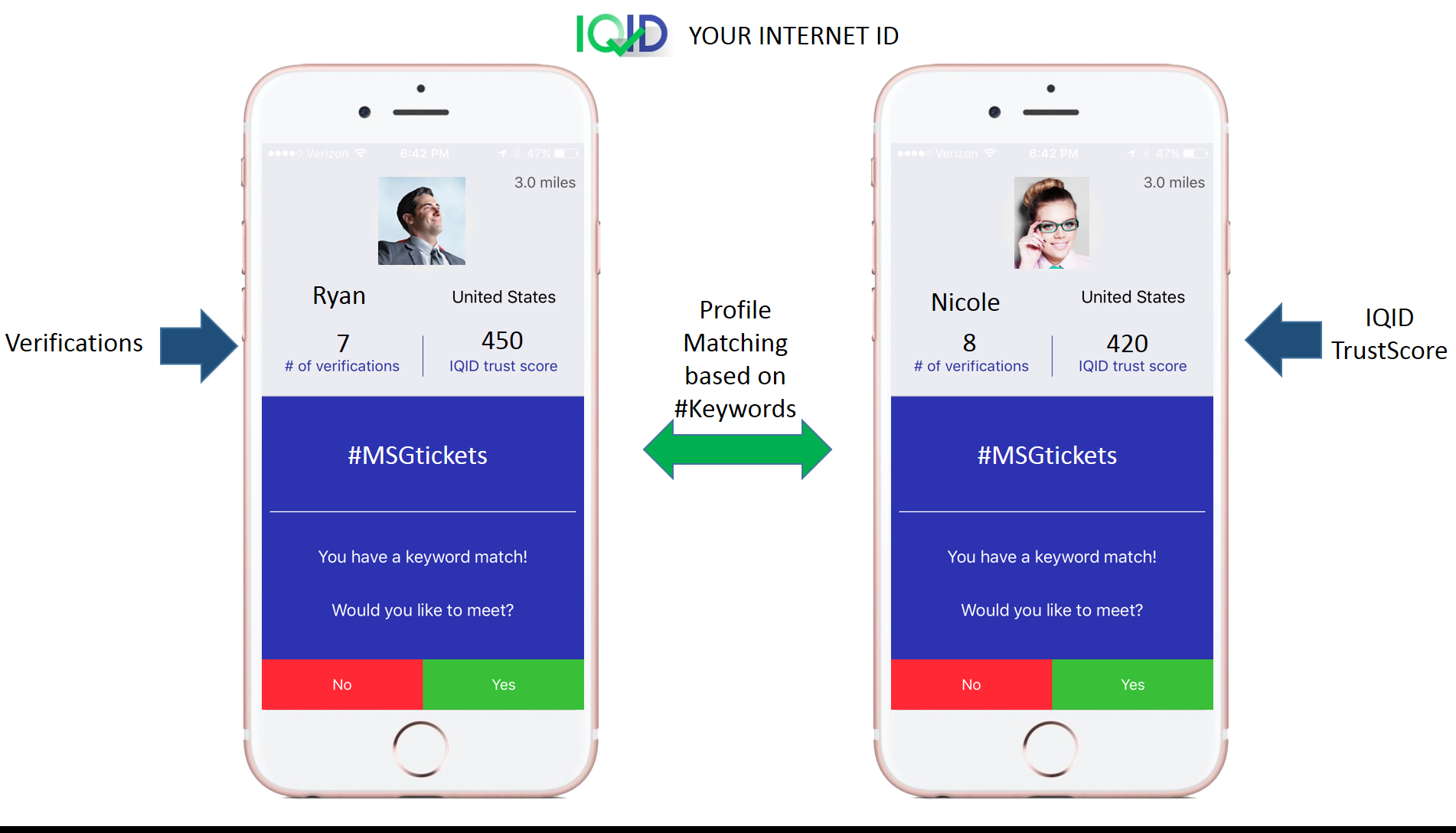 IQID is changing the way people meet, interact and do business. Every consumer can relate to seeing a good deal advertised by a private seller, but didn’t buy it as they had doubts on the legitimacy of the seller. And how many times have sellers not sold something as they did not want to deal with strangers. With IQID’s verified government ID profiles and Trust Score, buyers and sellers feel more secure by sharing their profiles before they do a Person-to-Person (P2P) transaction.