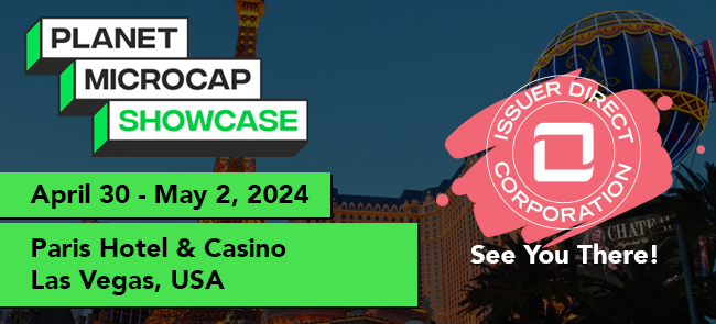RALEIGH, NC, April 25, 2024 (Newswire.com) - Issuer Direct Corporation (NYSE American:ISDR) (the "Company"), a leading communications company, is a gold sponsor at this year's Planet MicroCap Showcase: Vegas 2024.