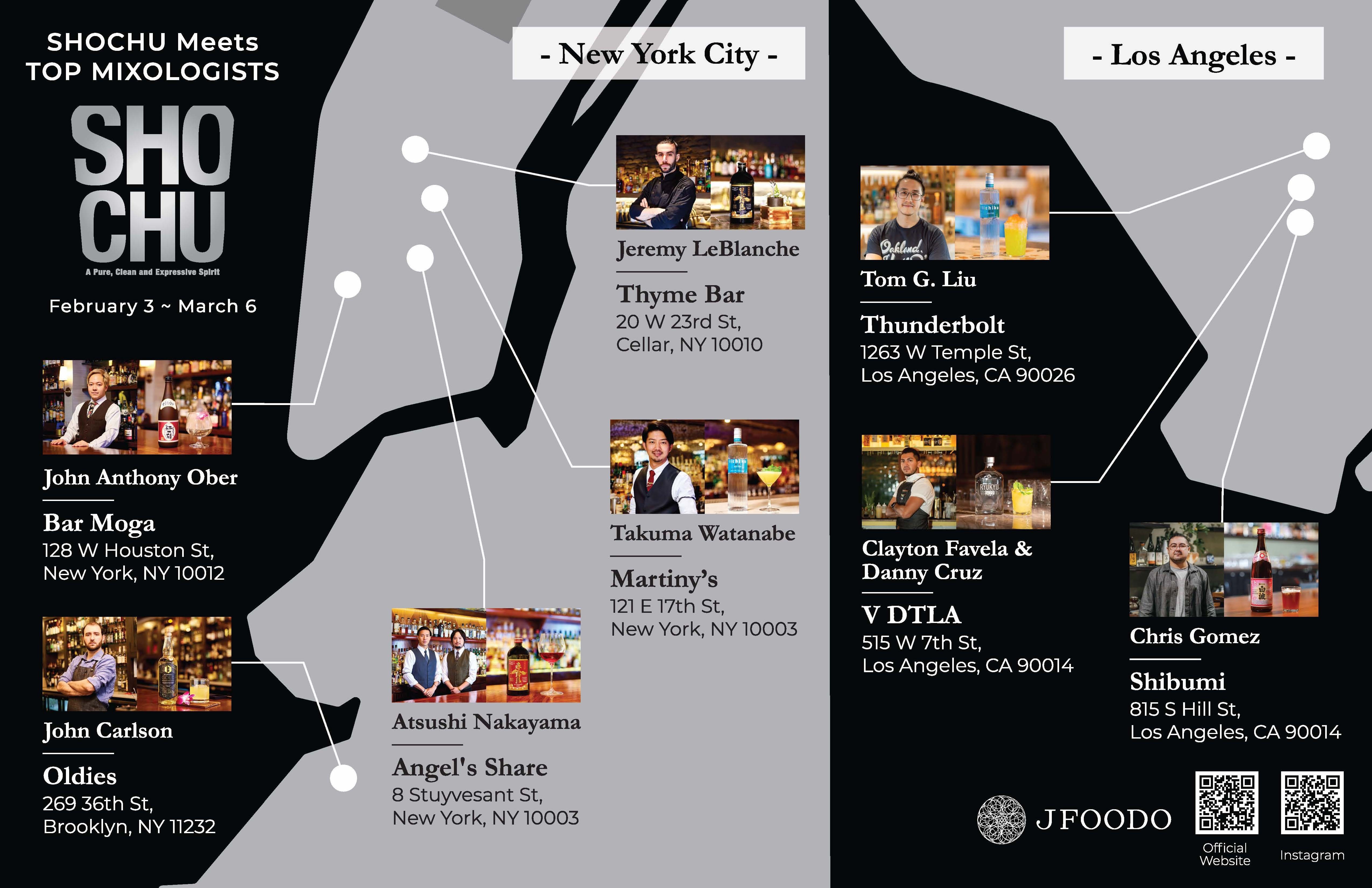 NEW YORK, February 10, 2022 (Newswire.com) - JFOODO, The Japan Food Product Overseas Promotion Center, has the goal of boosting the export of Japanese agricultural, forestry, fishery, and food products overseas. Throughout the year, events are organized focusing on specific products, and from February 3 - March 6, the focus is on the little-known Japanese spirit Shochu. This year, famous mixologists between New York City and Los Angeles have developed original Shochu cocktails to enlighten the public about the pure and expressive spirit. Shochu is a distilled beverage typically made from rice, barley, sweet potatoes, buckwheat, or brown sugar, and has a flavor often described as nutty or earthy. Each Shochu has a distinct flavor based on the base component and is about 25% alcohol. Shochu has clean, aromatic characteristics that may be faintly reminiscent of sake, due to the fact that both Shochu and sake typically begin with the use of koji, a microbe that converts the starches of rice into sugars. However, that is where the comparison ends. Shochu is a versatile spirit that can be enjoyed on the rocks or mixed with other ingredients, bringing out the umami of the brand of Shochu being used.