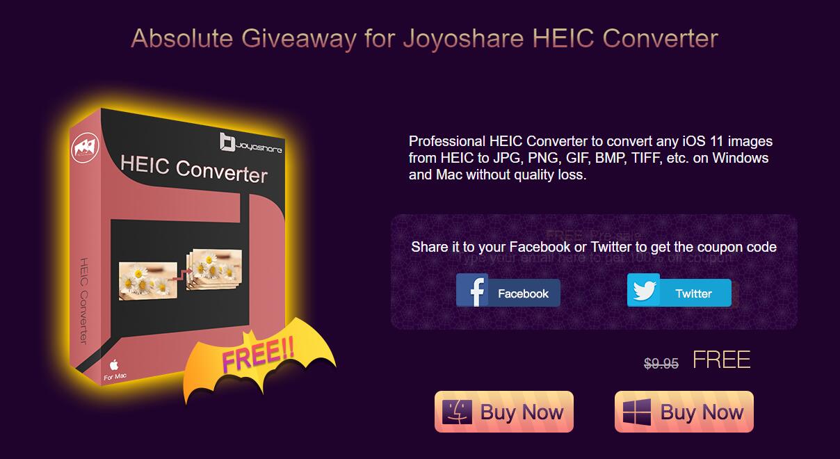 During the promotion period, customers can completely get Joyoshare HEIC Converter for free after a simple tap to share Joyoshare's promotion page to personal Facebook or Twitter platforms. Therefore, customers who capture Halloween photos as HEIC files can easily convert them to the desired format, like JPG, PNG, GIF, BMP, TIFF, etc., without quality loss. This smart HEIC converter can also be applied to adjust the resolution and quality of Halloween HEIC images in a flexible manner if customers are in need of it.