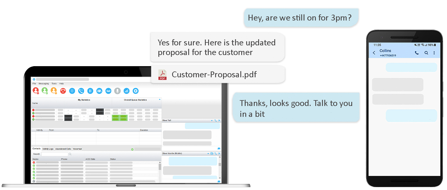 The Unity apps for BroadSoft sit across the Reception console, Desktop UC, Agent, and Supervisor for the BroadSoft ACD solution to address all customer use cases. The Unity-Telestax SMS capability is available across the entire Unity product offering.