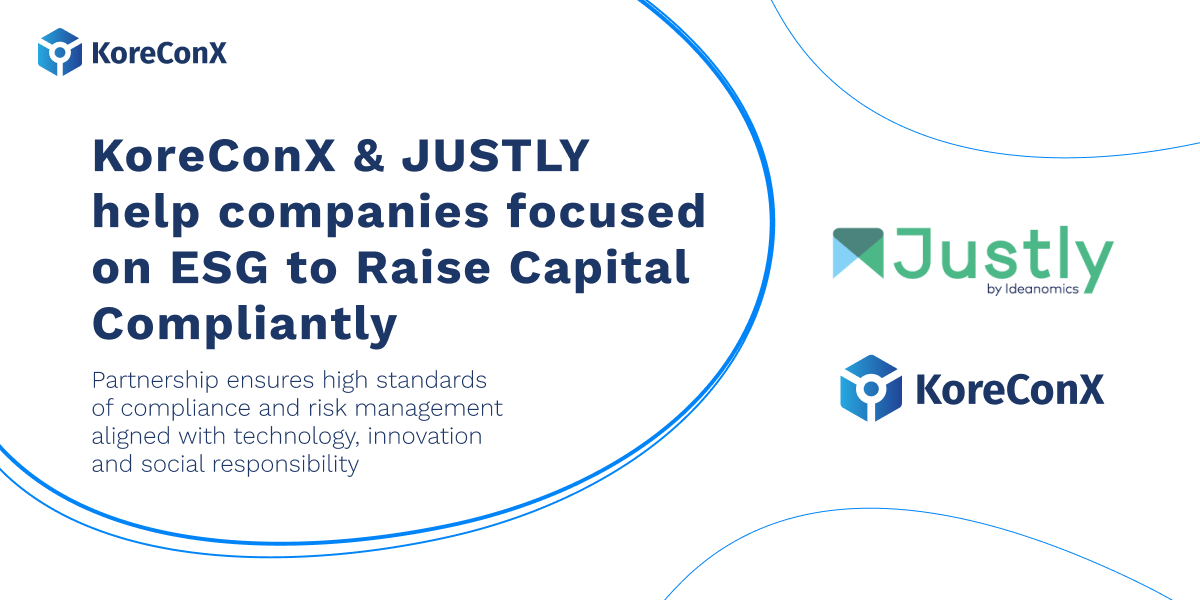 NEW YORK, April 13, 2022 (Newswire.com) - With a daily increase in demand for investments in companies focused on ESG (Environmental, Social, & Corporate Governance), KoreConX is thrilled to announce one more strategic KorePartner to its ecosystem: JUSTLY Markets LLC, a FINRA-registered broker-dealer, operating an online capital raising platform for ESG-principled companies and for solutions in the ESG space.