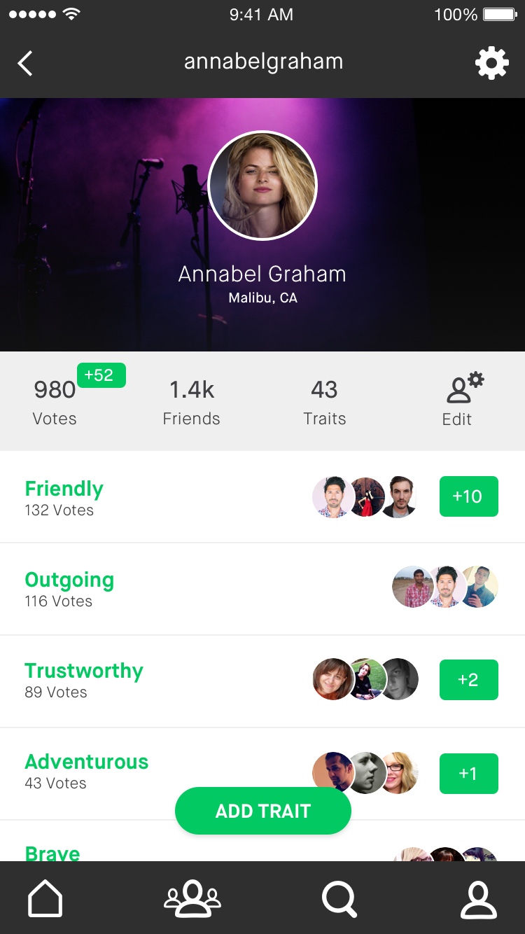 The company’s motto, “Vote up character traits. Feel the love” defines the app perfectly. Only good traits are available for choosing, making it an entirely complimentary app. Kreddos allows users to discover other people’s most valuable traits, gain insight on someone they just met, and vote up their friends' best traits. In addition, users are able to learn what others think about them and their friends and build their own social credibility. The app provides users the platform to gain reputable references from people they know best.