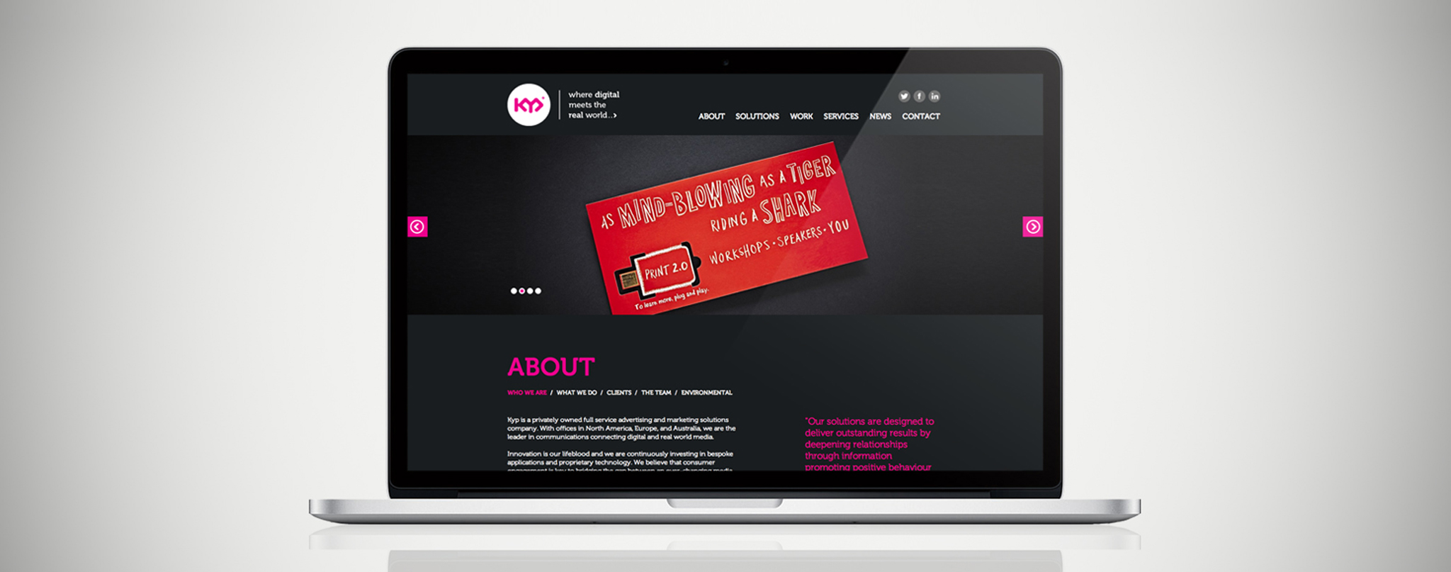 Online, June 18, 2013 (Newswire.com) - After an extensive strategic review, Kyp Plc (www.kyp.com), the leader in communication connecting digital and real world media, has announced a complete rebranding that includes the launch of a new website. Since 2005 Kyp has been helping brands establish deeper connections and engagement levels with their customers. With this rebranding, Kyp is focused on providing bespoke marketing solutions and proprietary technology offerings as they continue to grow worldwide.