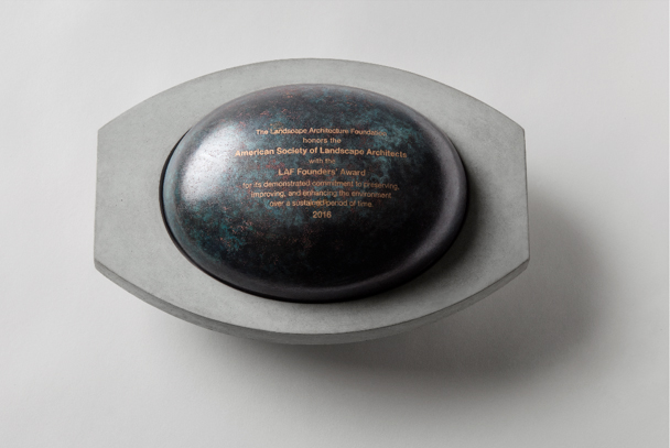 The Landscape Architecture Foundation (LAF) Founder’s Award is an award that is conveyed to a firm, agency, or organization that demonstrates a significant commitment to preserving, creating, or enhancing landscapes over a sustained period of time. The award may be given to landscape architecture groups, but is not limited to the profession.
