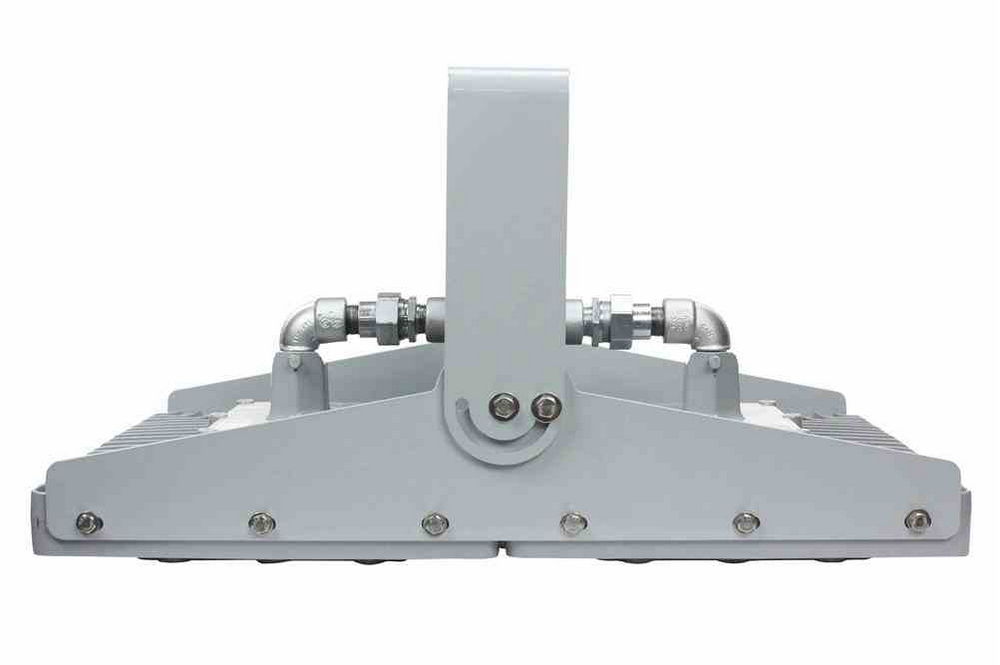 The EPL-HB-2X150LED-RT-D-V2 explosion proof LED light fixture features 0-10V flicker-free dimming capability, with a dimming output being controlled by a two-wire control giving operators manual control of brightness. This unit features varying beam angles, including a 60˚ beam mounted in high bay fixtures over 25 feet in height, a 125˚ beam for low bay fixtures in a height range of 15 to 25 feet, and a 140˚ beam for low bay fixtures in areas with a ceiling height of 15 feet or less.