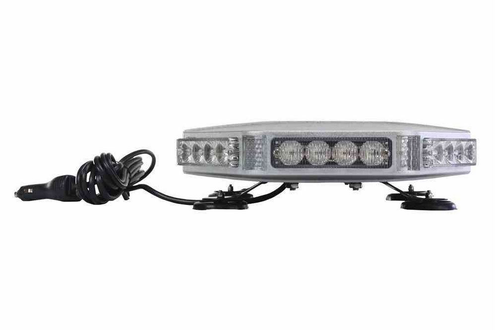The 9200-LED-SCM low-profile LED strobing light bar is equipped with 40 LEDs that offer 15 different flash patterns with a switch on the back of the cigarette plug for choosing the desired pattern. This light bar features an on/off switch on the back of the cigarette plug to turn the unit off or on without having to unplug it. This durable strobing light bar is made of an aluminum housing and an unbreakable polycarbonate lens.
