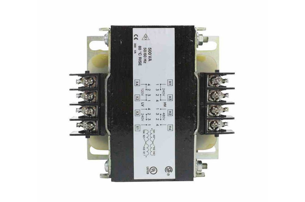 The MMT-400V-250VA-220V micro transformer has a terminal block design allowing for quick and easy hook-up with the ability to install fuse clips to the unit with ease. This unit features uniquely designed molded coil covers that offer superior cooling capabilities and a sleek appearance. This transformer has a rating of 0.25 kVA (250 VA) and has a primary voltage of 440V and secondary voltage of 220V.