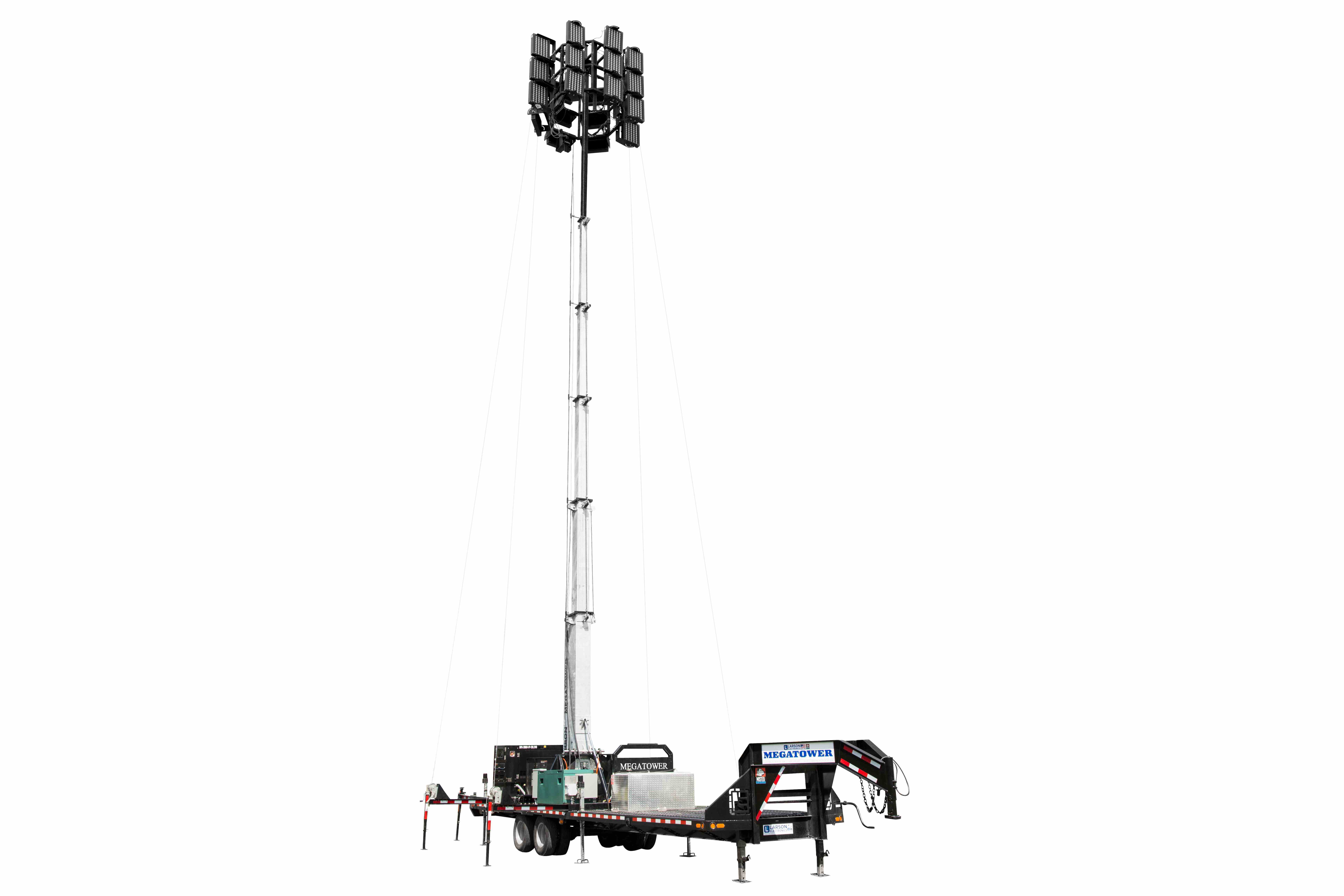 Larson Electronics Releases 65' Hydraulic LED Megatower®, (40) 150W LEDs, 110Gal Tank, 21' Trailer