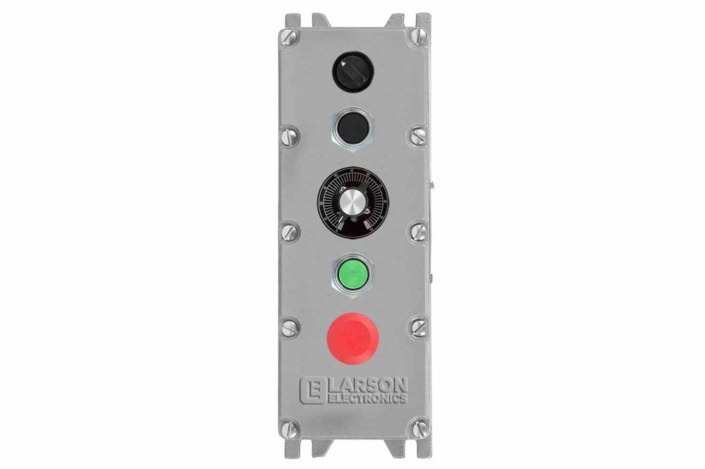 KEMP, Texas, June 6, 2019 (Newswire.com) - Larson Electronics, a Texas-based company with over 40 years of experience spearheading the industrial lighting and equipment sectors, announced the release of an explosion proof control station for use in Class I, Division 1 hazardous locations. This control station features five drilled and tagged operator holes and supports several control mechanisms for heavy-duty machines. This unit comes with an emergency-stop push-button, two-position selector switch, momentary push-buttons and a 10k Ohm potentiometer.